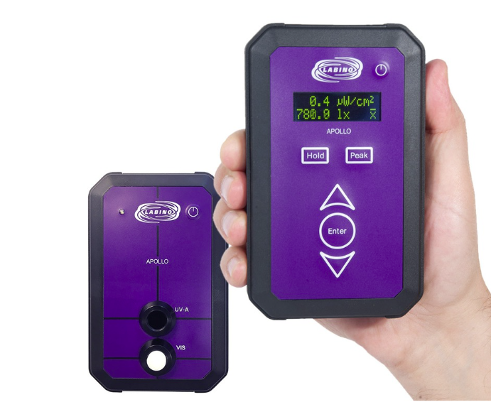 Apollo 3.0 is traceable to NIST (USA’s National Institute of Standards and Technology) and complies with ISO 3059. For Apollo blue, the UV-A sensor is replaced by a blue light sensor which is in compliance with CEN/TR 16638.Any Apollo meter can be upgraded to measure luminance by purchasing an upgrade package, including calibration at Labino.